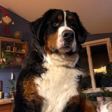 Howard is a purebred Bernese Mountain Dog. He came to us from Pennsylvania. He is our 3rd BMD. Howard is the perfect dog. He is smart, loving, gentle, a true guardian and loves Millie! Howard is the first one out in the morning to patrol the grounds and give the pasture a safety sweep before the barnyard is opened up. Howard takes his job very seriously and will often refuse to come in until he is absolutely certain that everything is secure. Howard keeps guard at the gate and will definitely be part of your visit to the farm.