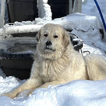 Millie is a purebred Great Pyrenees. She came to us from Kansas to be a livestock guardian dog here at the farm. Her instincts are incredible. She is kind and loving to our animals and visitors, patrols pasture borders and hangs with the herd. Millie will often be the farm greeter and meet you at your car for your visit.